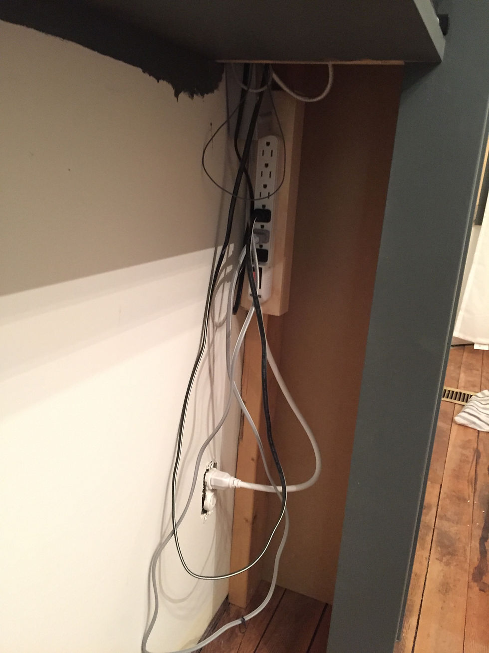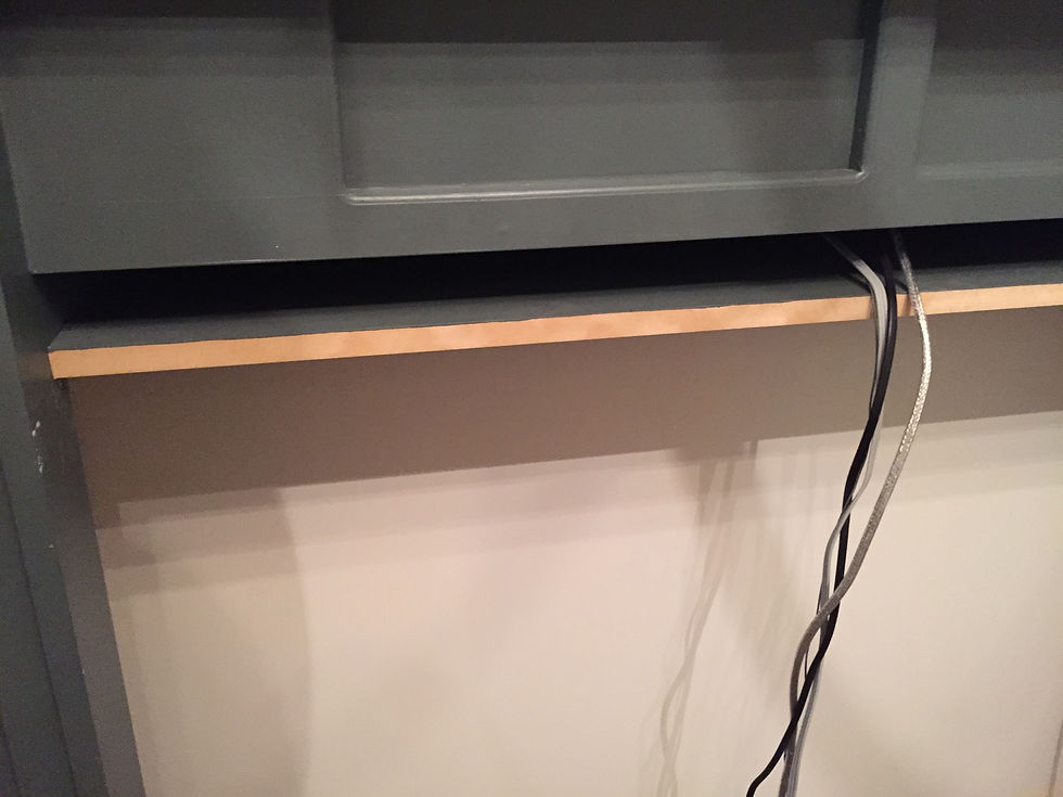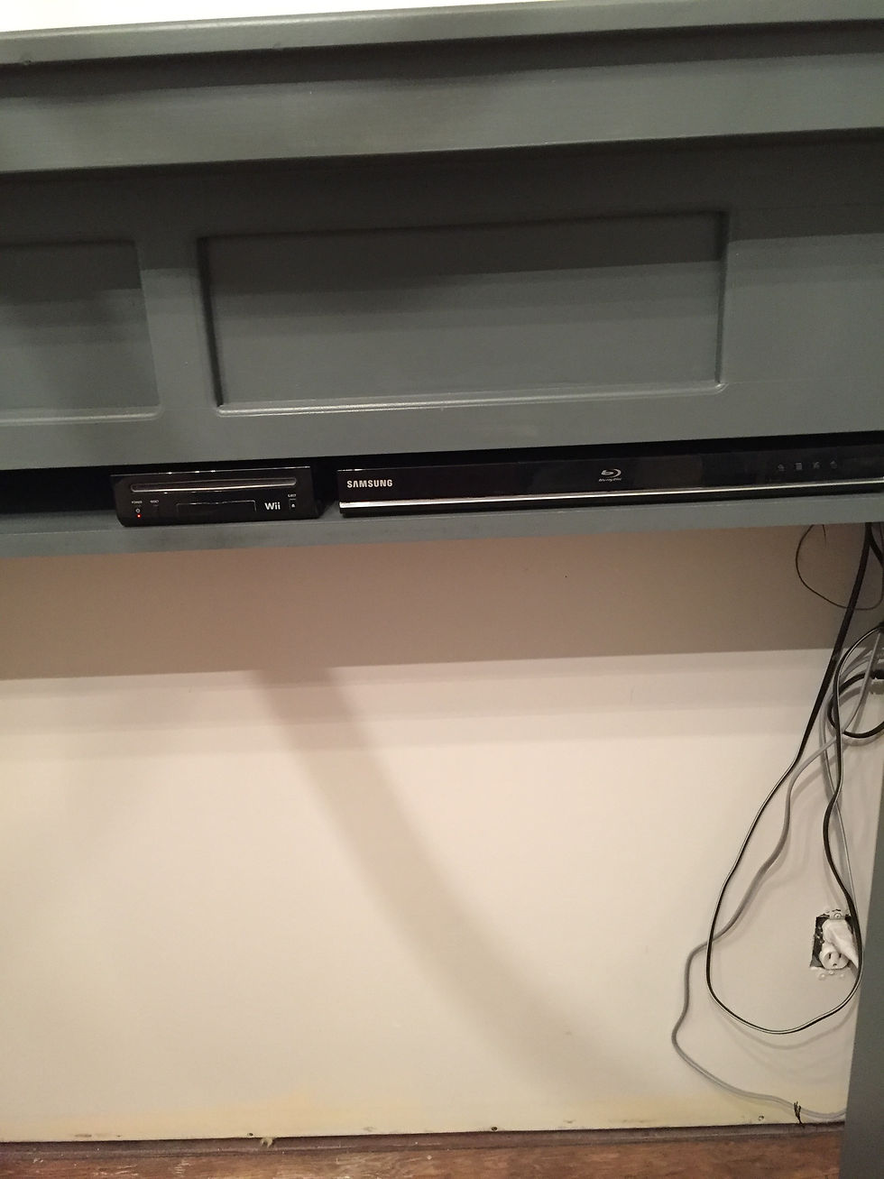 Most of the hard work is done. Now we just need more time to finish. This week we were hoping to clean up Mark's shop and than moving all my refinished furniture out there and list it. We also need to clear all the stuff out of the mouse infested cabin so we can rip the insides out. Can I say #demoday ! We need more days in a week. Here's the rest of our pictures, the finished shelf, and how it looks with the cords tucked away.