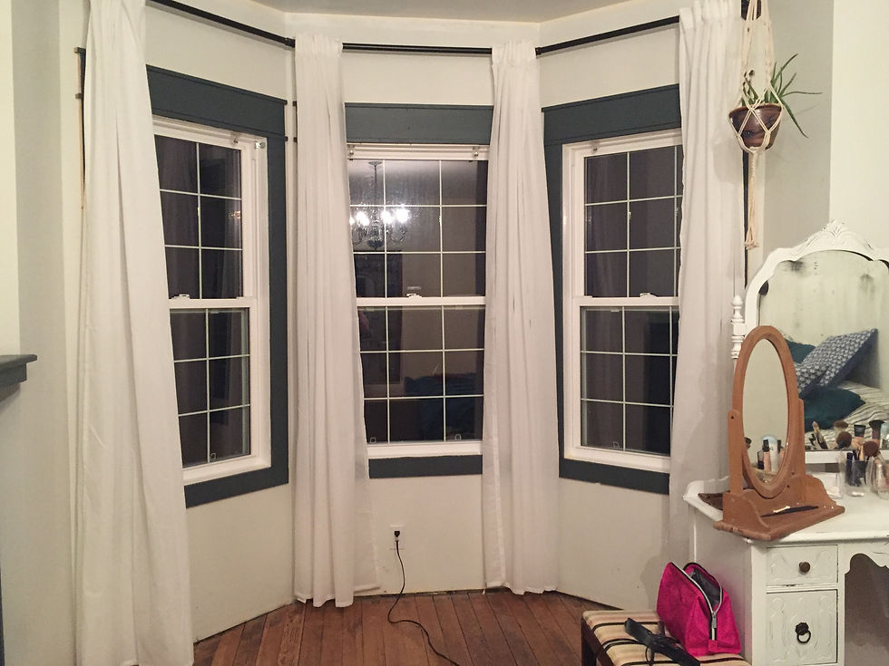 First, I'll give you a visual of our bedroom. Bed. Nightstands. Biggest dresser you've ever seen with TV on it across from the bed. Tall mirror. Tiny exposed closet. White walls. BOOOORING.